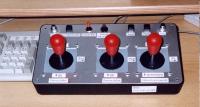 ![]() However, it is possible to build, or to have built to order, a realistic driver's control stand that will work with your computer. What you are prepared to pay will determine the complexity! The illustrations shown here: ![]() are of two styles of European control stand built by Joachim Schmid. Now here is an experimental control station which I have built to prove the control panel concept, independantly of Joachim's project. Earlier keyboards can be adapted to external commands as well as retaining the keyboard functions. Air Brake controls are to the left, throttle controls are to the right, as per the standard Australian practice (for right-hand driving position). The right hand image shows connections taken to the underside of a modified keyboard, with terminations made to existing tinned copper wire links on the "component" side. Click on the image and a larger view opens in a seperate browser window. ![]() ![]() It would probably be much more useful to wire them into their own keyboard controller which can then be run as an alternative to the regular computer keyboard. It is, however, just an experimental controller! I am currently working on a partial representation of a modern-style Australian control desk - with what some drivers call 'back-hoe' controls (for example, this is what the AN class of locomotive driver's station in real life looks like), ![]() and I am also working on another type similar to those supplied thirty years ago by GM (through Australian licensee Clyde Engineering) for the various Australian railways that used the classic version of the EMD 'Roller Switch Controller'. ![]() Both variations will use a dedicated (seperate) keyboard controller circuit board which has recently come on to the market at a very reasonable price. If there is interest I could also provide controls that can be connected by the user into their own earlier model keyboard, but this will require technical expertise on the part of the purchaser. Layout for American practice would have the Air Brake controls to the right of the throttle controls on the desktop, and with a roller switch controller to the driver's left, and the air brake control to his right. In the illustration here, taken from the driver's handbook for the Western Australian L-class 3300HP hood unit, model GT-26C, almost identical (except in height) with the SD-45, one can see firstly left hand driver's seat, and secondly the air brake to the left of the driving controls. Here are two photos of the controls of a BL-class locomotive which show equipment supplied in 1984... although those familiar with the classic design EMD roller switch controller will notice that the BL-class controller has different relative positions for the throttle and dynamic braking handles. The layout of the controls in the BL (and Victorian G-class) was changed after discussions between AN, the locomotive enginemens' union, and Clyde Engineering, up to 1983 when the BLs were being erected. ![]() ![]() In closing this section on locomotive controls, here is an interesting shot, from the Microsoft Train Simulator programme. Bear in mind this is a Train Simulator, not necessarily a Train Driving Simulator. The digitally created illustration shows a recent American GE powered locomotive with desktop controls similar to the left-hand drive controls on the Australian EMD powered AN class shown above. Note the air brake controls are to the right of the throttle and forward/reverse handle, which is simliar to the layout of controls in the right-hand drive Queensland Railways 4000-class - for which Adelaide company Sydac built a mobile (trailer fitted) driver training simulator during 1999. ![]() We hope to bring a picture of an Australian GE locomotive's driving controls shortly, from the Goninan-built NR class. Enquiries to construct these dedicated control stands to order are not being accepted for either of my control panels, until the economic viability of building them is resolved. However, Joachim Schmidt's controllers are available; please contact him by email - address at the foot of the page.